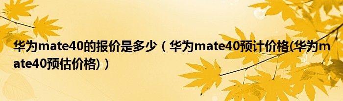华为mate40的报价是多少(华为mate40预计价格(华为mate40预估价格))