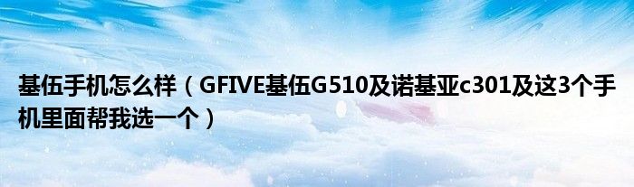1,GFIVE基伍G510 诺基亚c301 这3个手机里面帮我选一个:还可以哦我一直在用这款了★ gfive基伍G510报价如何 gfive基伍手机g510怎么样 至于这牌子质量怎么样?看看下面网友们的评论, 不要被骗了 zhidao.baidu