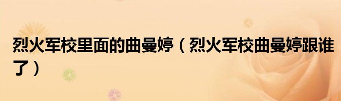 大家好,小晋来为大家解答以下问题,关于烈火军校里面的曲曼婷,烈火军校曲曼婷跟谁了很多人还不知道,今天让我们一起来看看吧!