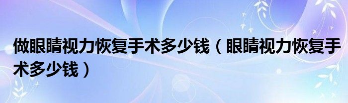 1、眼部视力恢复手术,如果是指近视手术,因为手术方式、区域、手术费用的不同,费用也不同。