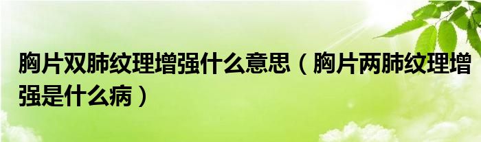 大家好,linda来为大家解答以上的问题。胸片双肺纹理增强什么意思,胸片两肺纹理增强是什么病很多人还不知道,现在让我们一起来看看吧!