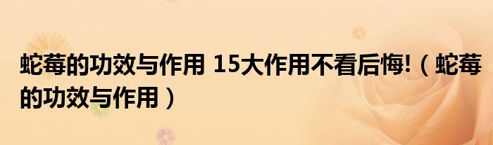蛇莓的功效与作用 15大作用不看后悔!(蛇莓的功效与作用)