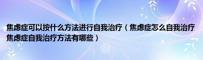 大家好,linda来为大家解答以上的问题。焦虑症可以按什么方法进行自我治疗,焦虑症怎么自我治疗 焦虑症自我治疗方法有哪些很多人还不知道,现在让我们一起来看看吧!