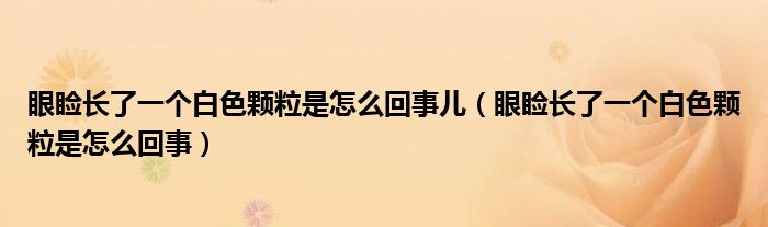 大家好,linda来为大家解答以上的问题。眼睑长了一个白色颗粒是怎么回事儿,眼睑长了一个白色颗粒是怎么回事很多人还不知道,现在让我们一起来看看吧!