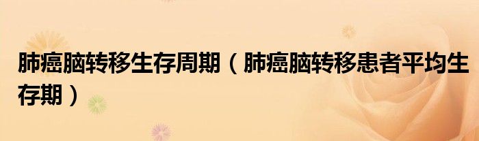 大家好,linda来为大家解答以上的问题。肺癌脑转移生存周期,肺癌脑转移患者平均生存期很多人还不知道,现在让我们一起来看看吧!