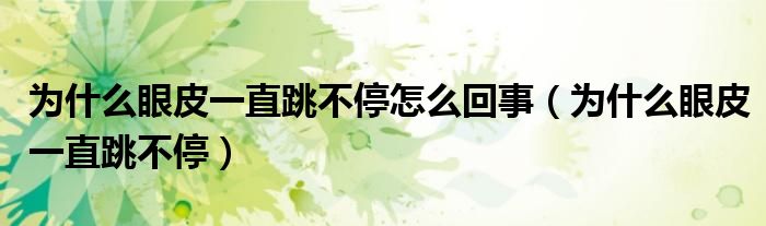 大家好,linda来为大家解答以上的问题。为什么眼皮一直跳不停怎么回事,为什么眼皮一直跳不停很多人还不知道,现在让我们一起来看看吧!