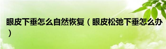 大家好,linda来为大家解答以上的问题。眼皮下垂怎么自然恢复,眼皮松弛下垂怎么办很多人还不知道,现在让我们一起来看看吧!