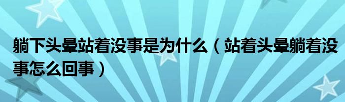 大家好,linda来为大家解答以上的问题。躺下头晕站着没事是为什么,站着头晕躺着没事怎么回事很多人还不知道,现在让我们一起来看看吧!