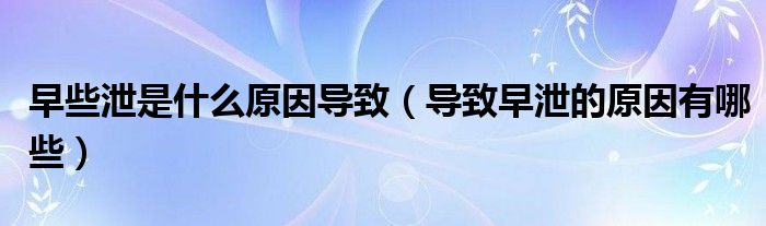 大家好,linda来为大家解答以上的问题。早些泄是什么原因导致,导致早泄的原因有哪些很多人还不知道,现在让我们一起来看看吧!