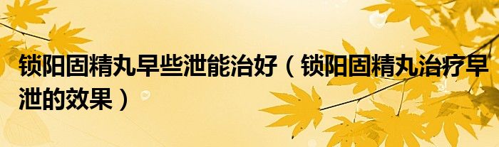 锁阳固精丸早些泄能治好(锁阳固精丸治疗早泄的效果)