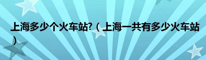 大家好,小晋来为大家解答以下问题,关于上海多少个火车站?,上海一共有多少火车站很多人还不知道,今天让我们一起来看看吧!