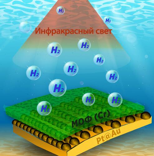 当膜用水涂覆并暴露于红外光时,在其表面上观察到等离子体共振激发。在这种情况下,在金膜上产生的“热”电子被转移到铂层,并在与有机层的界面处引发质子的还原。如果电子到达有机金属骨架的催化中心,后者将导致质子还原和氢的产生。在这种情况下,有机金属框架同时起到过滤器的作用,滤出杂质并使纯净水通过金属层。在实验过程中,发现一块面积为100 cm2的材料能够以0.5 l / h的速度产生氢气。根据项目参与者的说法,这是二维材料记录的最高比率之一。