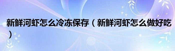 关于新鲜河虾怎么冷冻保存,新鲜河虾怎么做好吃这个很多人还不知道,今天菲菲来为大家解答以上的问题,现在让我们一起来看看吧!