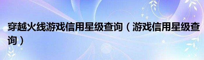 大家好,小晋来为大家解答以下问题,关于穿越火线游戏信用星级查询,游戏信用星级查询很多人还不知道,今天让我们一起来看看吧!