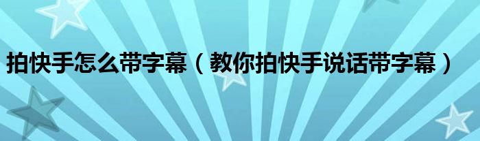 大家好,小晋来为大家解答以下问题,关于拍快手怎么带字幕,教你拍快手说话带字幕很多人还不知道,今天让我们一起来看看吧!