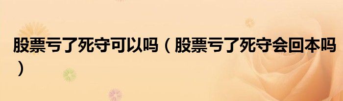 大家好,小晋来为大家解答以下问题,关于股票亏了死守可以吗,股票亏了死守会回本吗很多人还不知道,今天让我们一起来看看吧!