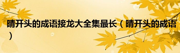 大家好,小晋来为大家解答以下问题,关于晴开头的成语接龙大全集最长,晴开头的成语很多人还不知道,今天让我们一起来看看吧!