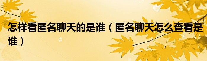 怎样看匿名聊天的是谁(匿名聊天怎么查看是谁)