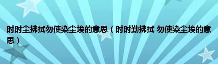 大家好,小晋来为大家解答以下问题,关于时时尘拂拭勿使染尘埃的意思,时时勤拂拭 勿使染尘埃的意思很多人还不知道,今天让我们一起来看看吧!