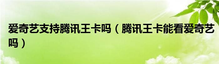 大家好,小晋来为大家解答以下问题,关于爱奇艺支持腾讯王卡吗,腾讯王卡能看爱奇艺吗很多人还不知道,今天让我们一起来看看吧!