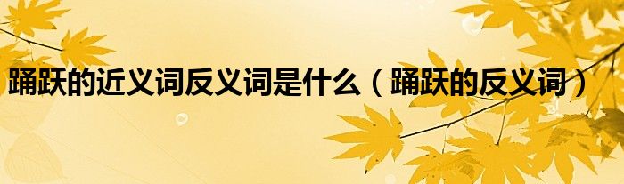 大家好,小晋来为大家解答以下问题,关于踊跃的近义词反义词是什么,踊跃的反义词很多人还不知道,今天让我们一起来看看吧!