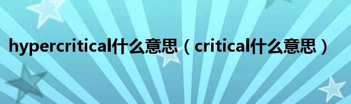 大家好,小晋来为大家解答以下问题,关于hypercritical什么意思,critical什么意思很多人还不知道,今天让我们一起来看看吧!