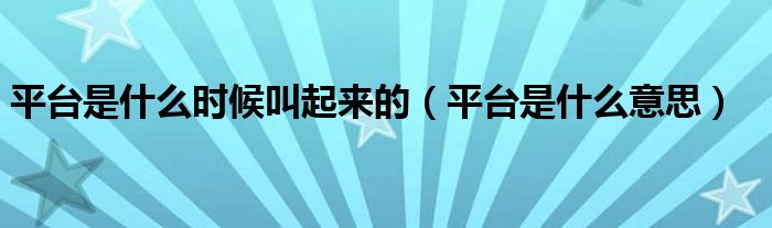 平台是什么时候叫起来的,平台是什么意思很多人还不知道,乐乐来为大家解答以上问题,现在让我们一起来看看吧!