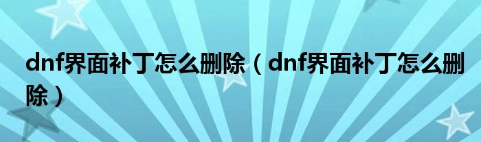 dnf界面补丁怎么删除,dnf界面补丁怎么删除很多人还不知道,乐乐来为大家解答以上问题,现在让我们一起来看看吧!