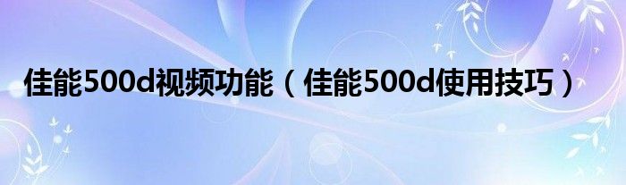 佳能500d视频功能,佳能500d使用技巧很多人还不知道,乐乐来为大家解答以上问题,现在让我们一起来看看吧!