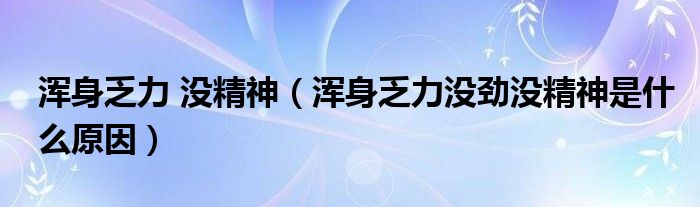 大家好,linda来为大家解答以上的问题。浑身乏力 没精神,浑身乏力没劲没精神是什么原因很多人还不知道,现在让我们一起来看看吧!