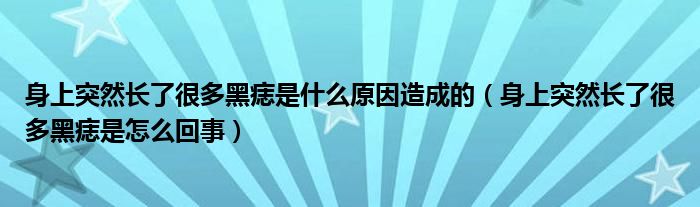 大家好,linda来为大家解答以上的问题。身上突然长了很多黑痣是什么原因造成的,身上突然长了很多黑痣是怎么回事很多人还不知道,现在让我们一起来看看吧!