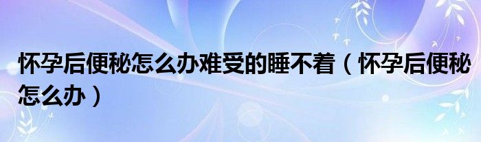 怀孕后便秘怎么办难受的睡不着(怀孕后便秘怎么办)
