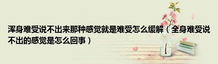 大家好,linda来为大家解答以上的问题。浑身难受说不出来那种感觉就是难受怎么缓解,全身难受说不出的感觉是怎么回事很多人还不知道,现在让我们一起来看看吧!