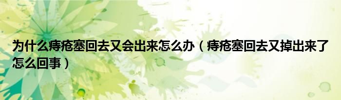 大家好,linda来为大家解答以上的问题。为什么痔疮塞回去又会出来怎么办,痔疮塞回去又掉出来了怎么回事很多人还不知道,现在让我们一起来看看吧!