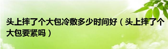 大家好,linda来为大家解答以上的问题。头上摔了个大包冷敷多少时间好,头上摔了个大包要紧吗很多人还不知道,现在让我们一起来看看吧!