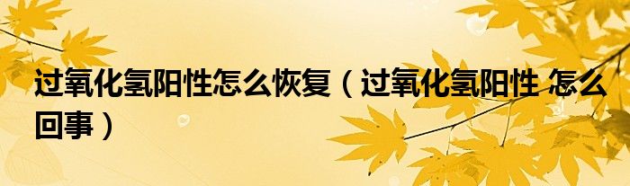 大家好,linda来为大家解答以上的问题。过氧化氢阳性怎么恢复,过氧化氢阳性 怎么回事很多人还不知道,现在让我们一起来看看吧!