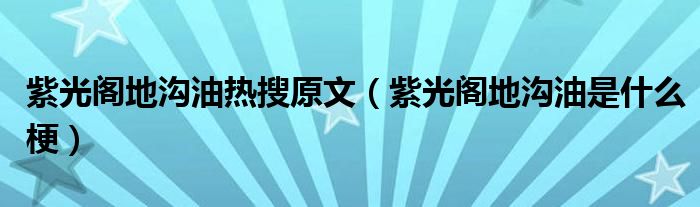 紫光阁地沟油热搜原文(紫光阁地沟油是什么梗)