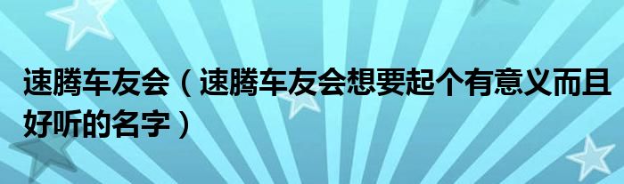 大家好,小常来为大家解答以下问题,对于速腾车友会,速腾车友会想要起个有意义而且好听的名字很多人还不知道,今天让我们一起来看看吧!