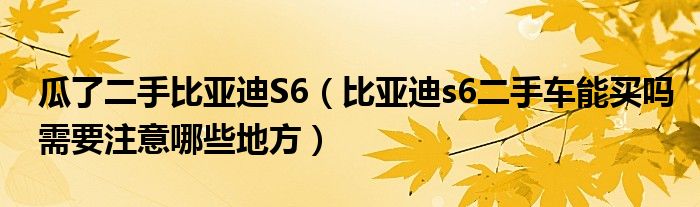 大家好,小常来为大家解答以下问题,对于瓜了二手比亚迪S6,比亚迪s6二手车能买吗需要注意哪些地方很多人还不知道,今天让我们一起来看看吧!