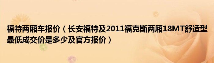 福特两厢车报价(长安福特及2011福克斯两厢18MT舒适型最低成交价是多少及官方报价)
