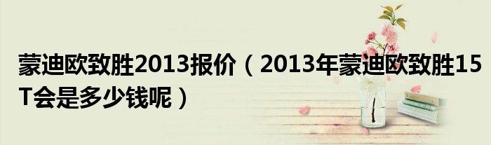 大家好,小常来为大家解答以下问题,对于蒙迪欧致胜2013报价,2013年蒙迪欧致胜15T会是多少钱呢很多人还不知道,今天让我们一起来看看吧!