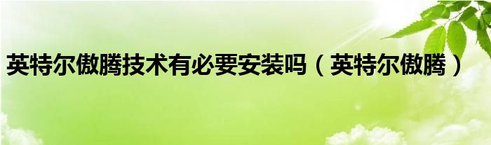 大家好,来宝来为大家解答以下问题,英特尔傲腾技术有必要安装吗,英特尔傲腾很多人还不知道,今天让我们一起来看看吧!