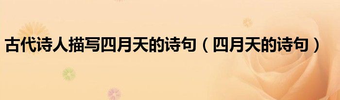 大家好,小晋来为大家解答以下问题,关于古代诗人描写四月天的诗句,四月天的诗句很多人还不知道,今天让我们一起来看看吧!
