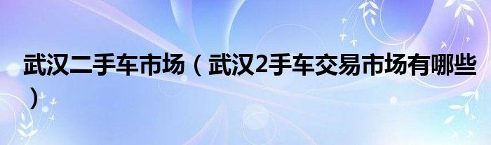 武汉目前有爱之家长丰二手车市场,竹叶山二手车市场,汉口北二手车,申官渡二手车市场,绅宝二手车市场,1号车市,这几家都是很大的二手车市