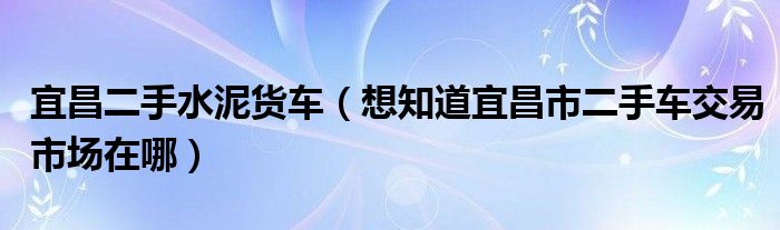 大家好,小常来为大家解答以下问题,对于宜昌二手水泥货车,想知道宜昌市二手车交易市场在哪很多人还不知道,今天让我们一起来看看吧!