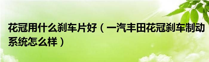 大家好,阳阳来为大家讲解下。花冠用什么刹车片好,一汽丰田花冠刹车制动系统怎么样很多人还不知道,现在让我们一起来看看吧!