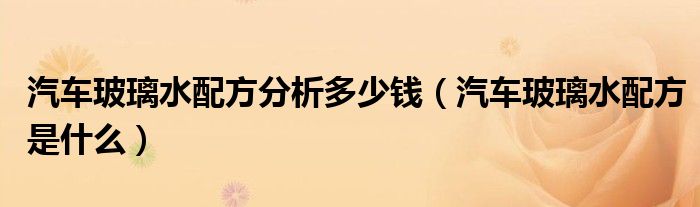 大家好,阳阳来为大家讲解下。汽车玻璃水配方分析多少钱,汽车玻璃水配方是什么很多人还不知道,现在让我们一起来看看吧!