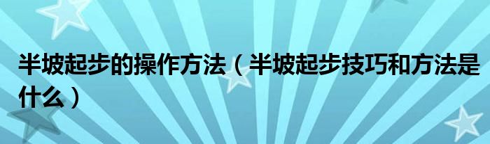 大家好,阳阳来为大家讲解下。半坡起步的操作方法,半坡起步技巧和方法是什么很多人还不知道,现在让我们一起来看看吧!