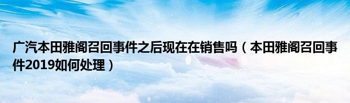 大家好,阳阳来为大家讲解下。广汽本田雅阁召回事件之后现在在销售吗,本田雅阁召回事件2019如何处理很多人还不知道,现在让我们一起来看看吧!