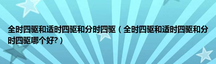 大家好,小美来为大家解答以上问题。全时四驱和适时四驱和分时四驱,全时四驱和适时四驱和分时四驱哪个好?很多人还不知道,现在让我们一起来看看吧!